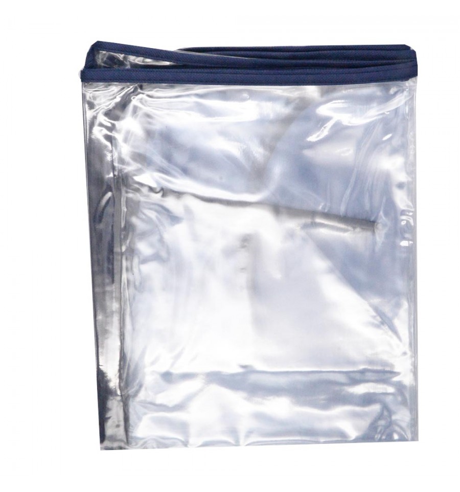 Forro para el coche de bebé. Color Transparente con borde azul oscuro. Medidas Ancho 47cm, Alto 70cm,Largo 60cm. Envios a nivel nacional