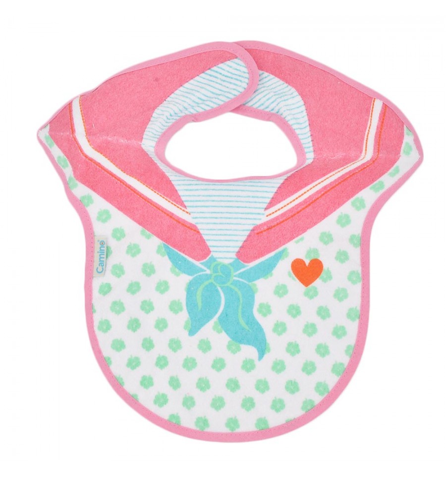 Babero con sistema de velcro estampado rosado, absorbente e impermeable. Composición: 70%poliester 30% algodon. Envios a nivel nacional.