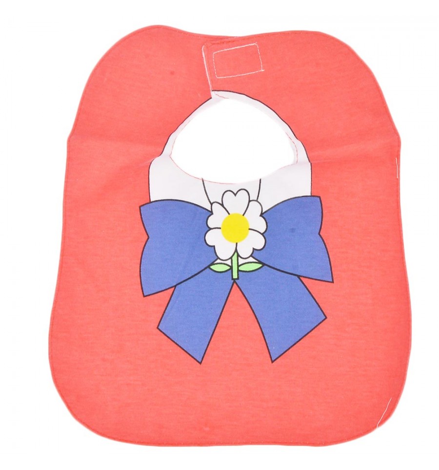 Babero con sistema de velcro estampado de flor, color rojo. Envios a nivel nacional.