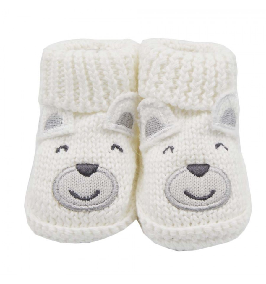 Medias zapato para bebé niño en hilo talla unica Color Blanco diseño de osito. Envios a nivel nacional