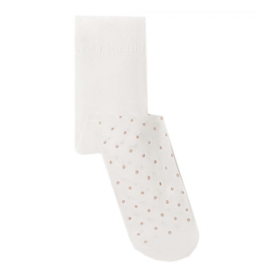 Media velada para bebé niña Color Crudo con puntos brillantes Composición: 94% Poliamida, 6% Elastano. Marca Mayoral. Envios a nivel nacional.