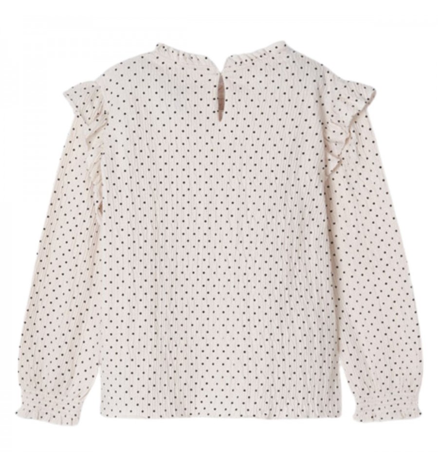 Camiseta de manga larga para niña, cuello redondo, color beige.
