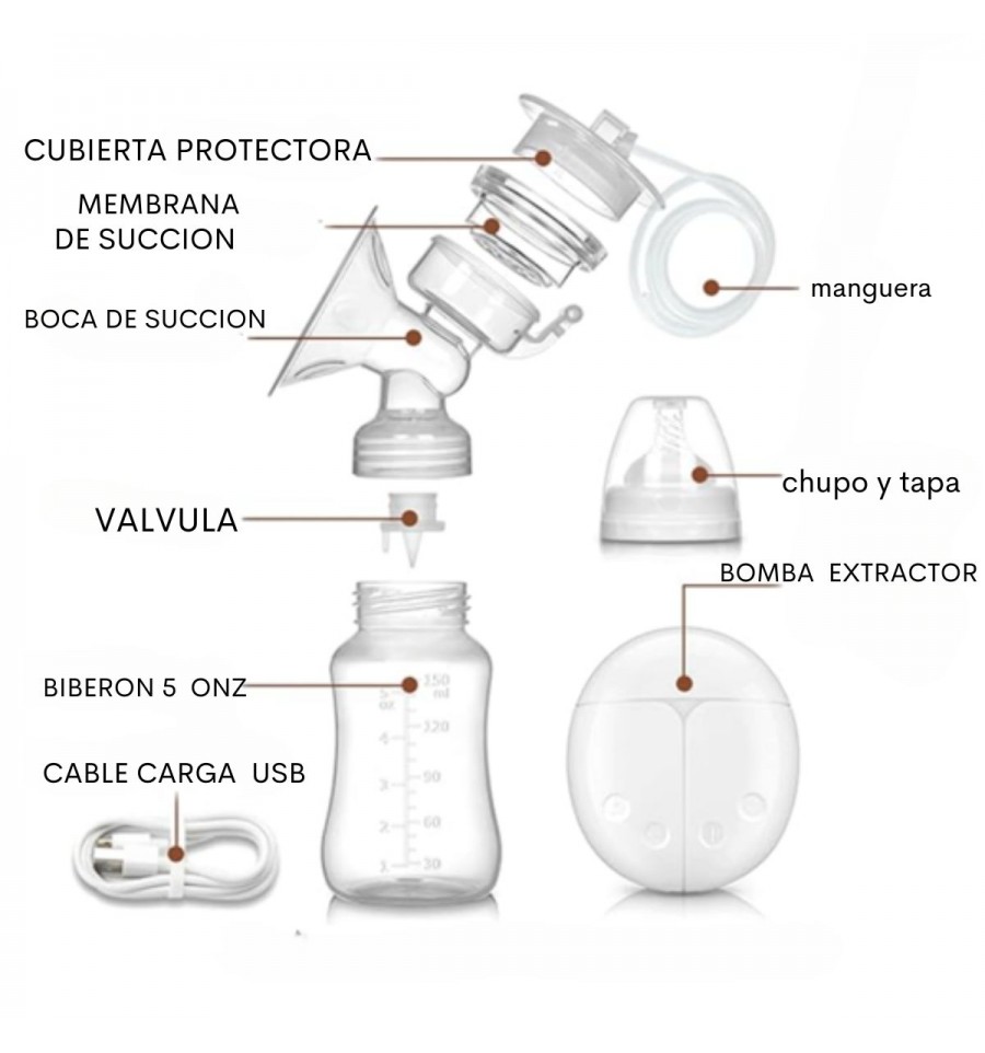 todas las partes de nuestro extractor de leche no contienen BPA, el diseño de la válvula garantiza que la leche materna/la humedad o el micro vapor no fluirán hacia el motor a lo largo de la tubería, evitando la contaminación de la leche materna. El extractor de leche portátil se puede poner fácilmente en tu bolso o pañalera.