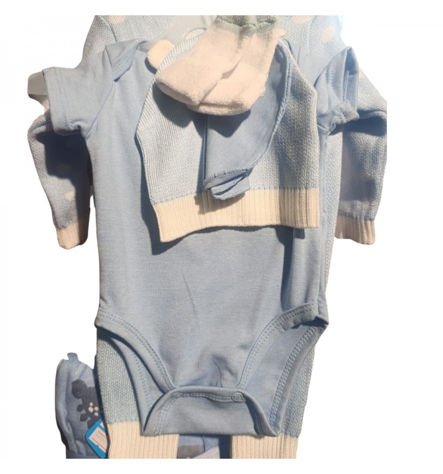 contiene : Buso, pantalón, body, gorro, medias y toallita babitas