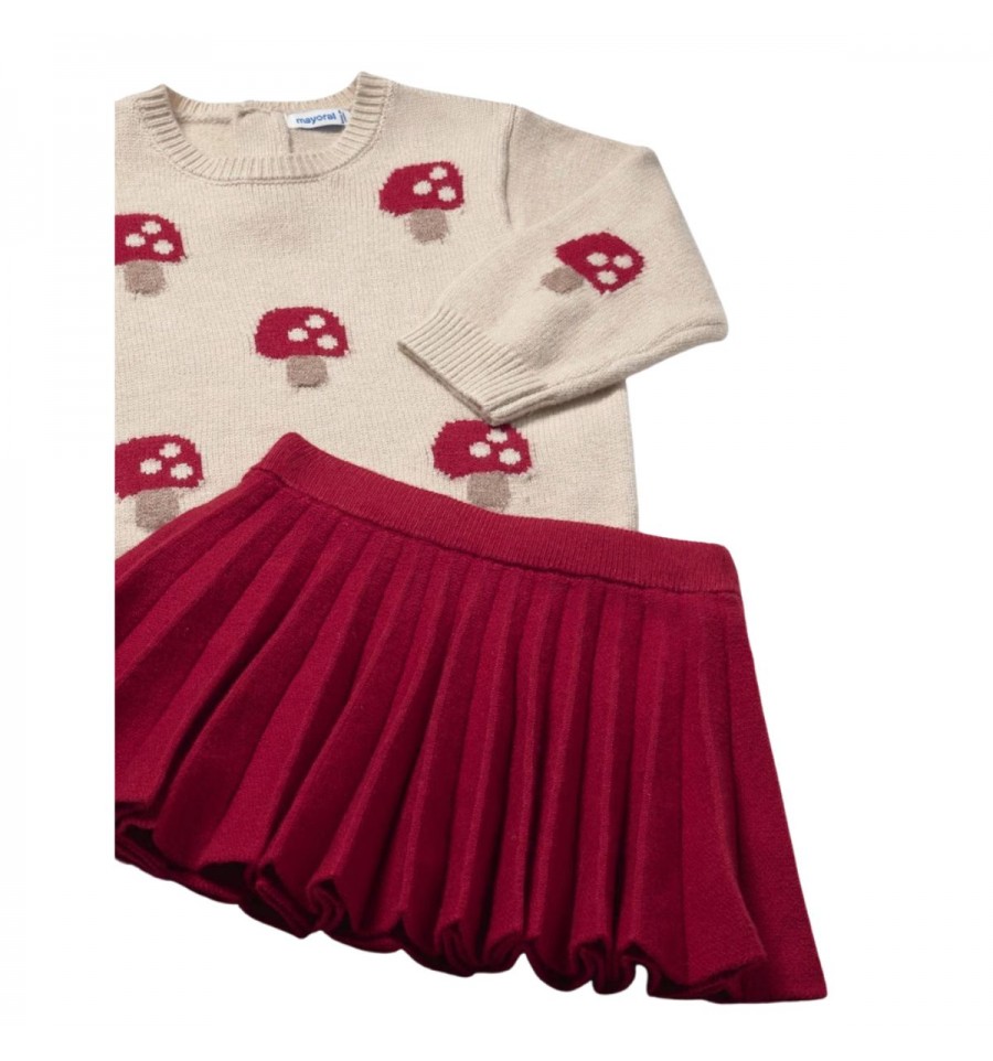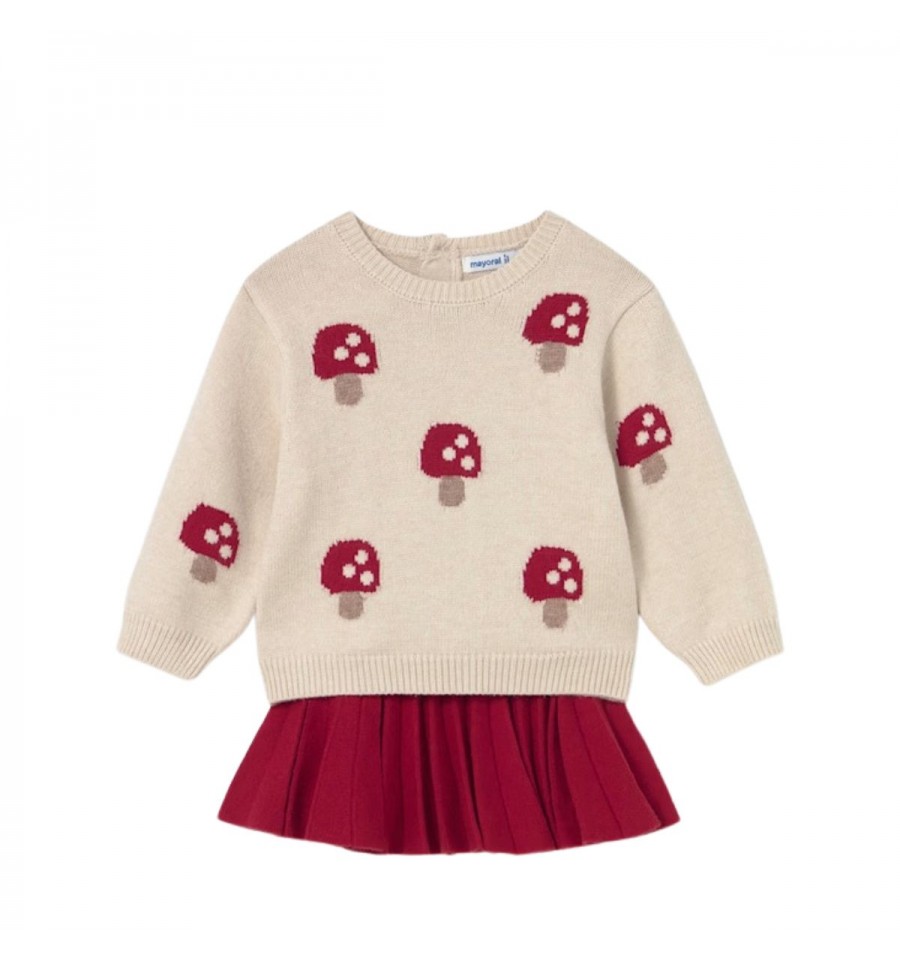 Contiene poliéster reciclado. Conjunto de buso y falda combinados para bebé.