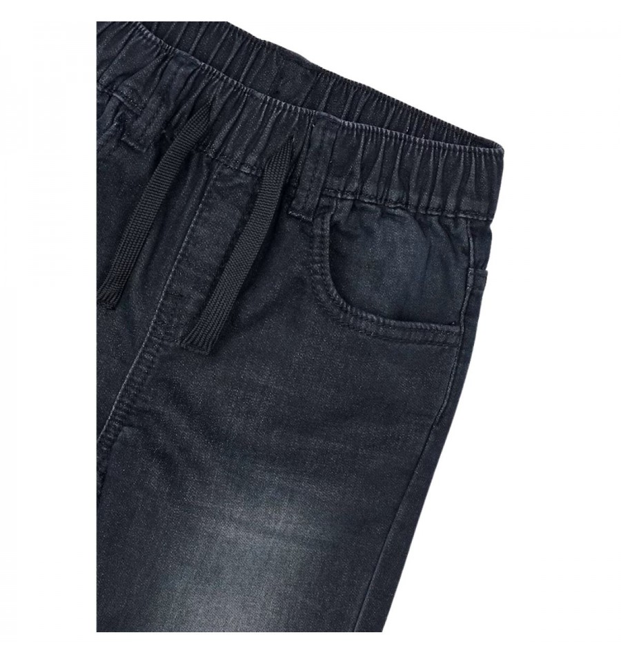 Pantalón largo de tipo jogger para niño, holgado en la parte superior y más estrecho a medida que baja hacia el tobillo. Perfecto para looks sport, que reflejan la influencia de lo deportivo en la ropa de calle. Cinturilla elástica con cordón. Tejido vaquero cómodo y combinable para los looks diarios.
