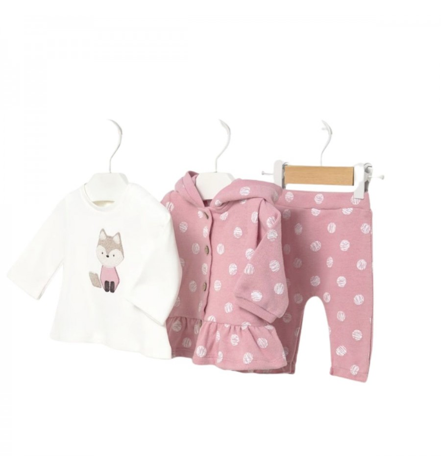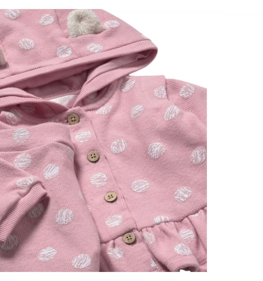 manga larga para recién nacida. Cuello con capucha. Cierre con botones en la parte delantera. Elementos de adorno: aplique de orejitas.