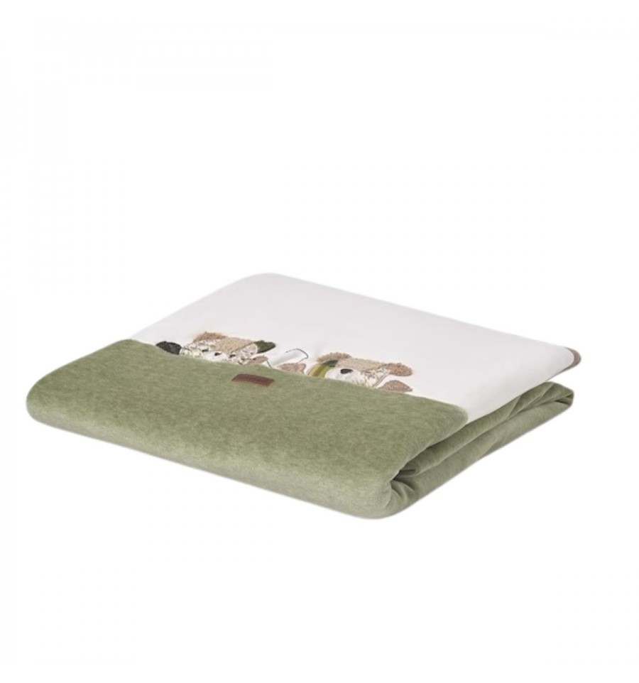 Cálida manta infantil de gran suavidad, con la que tu bebé se sentirá abrigado y protegido en sus momentos de descanso. Elementos de adorno: bordados.