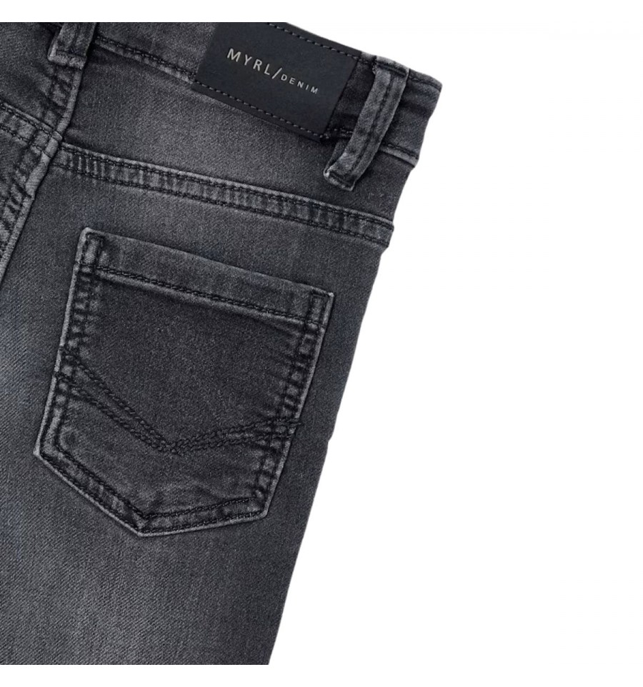 Pantalón largo para niño de corte ajustado (Slim fit). Cierre con cremallera y botón. Goma elástica regulable con botones en el interior de la cinturilla para mayor ajuste. Tejido vaquero cómodo y combinable para los looks diarios. Diseño con múltiples bolsillos