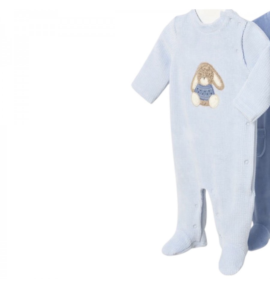 Pijama de manga larga para recién nacido. Cuello redondo. Cierre con botones a presión en la parte delantera. Botones a presión en la entrepierna para facilitar la puesta de la prenda. Cálido tejido de algodón con tacto suave y aterciopelado. Elementos de adorno: bordados