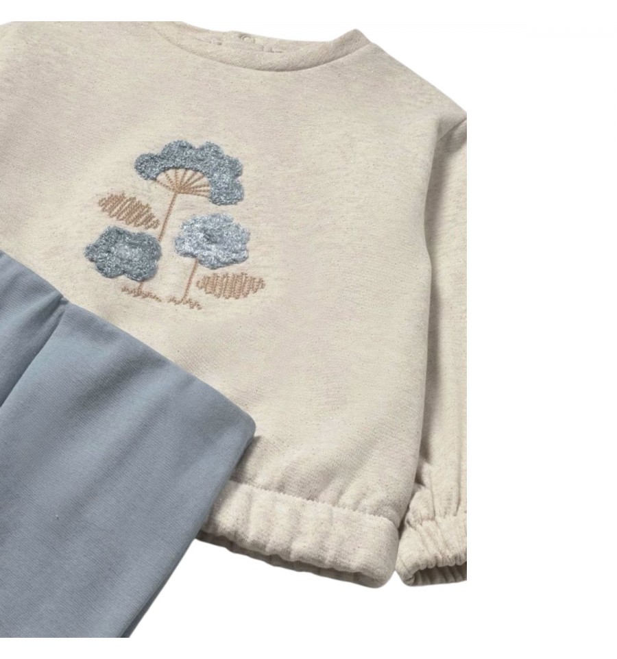 Sudadera de manga larga para bebé con puños elásticos. Cuello redondo. Cierre con botones a presión en la parte posterior. Bajo elástico para un mejor ajuste. Elementos de adorno: bordado.