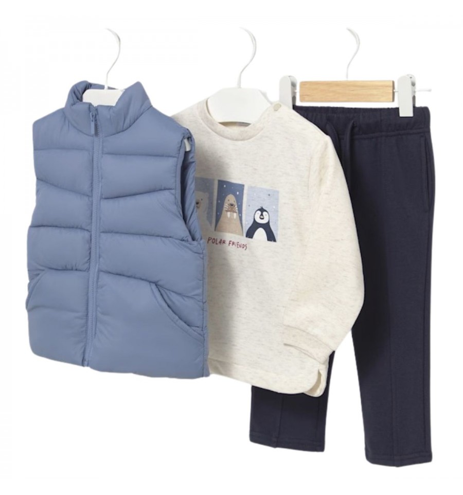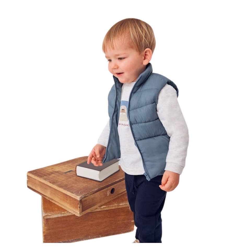 Chaleco para bebé. Cierre central delantero con cremallera. Exterior textil con efecto acolchado. Modelo con forro interior. Bolsillos funcionales en la parte delantera.