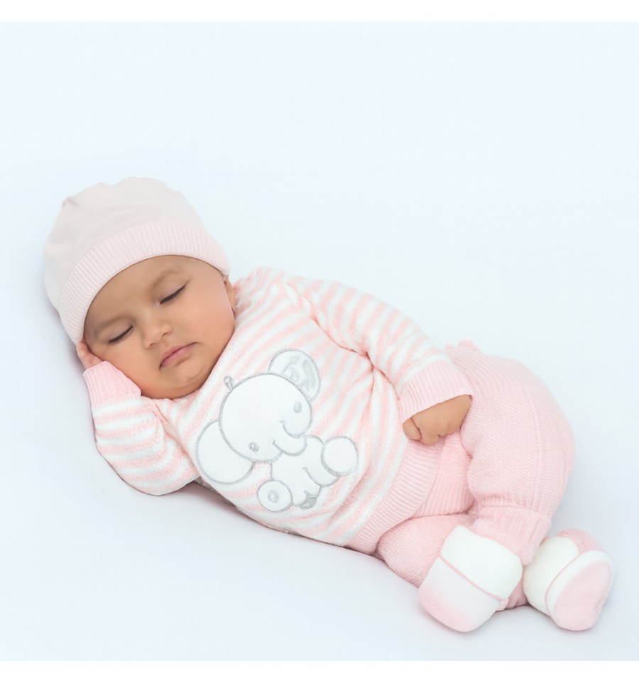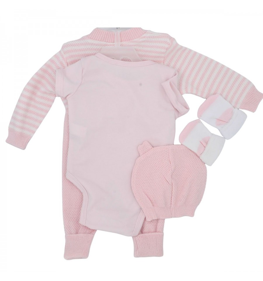 contiene : Buso, pantalón, body, gorro, medias y toallita babitas