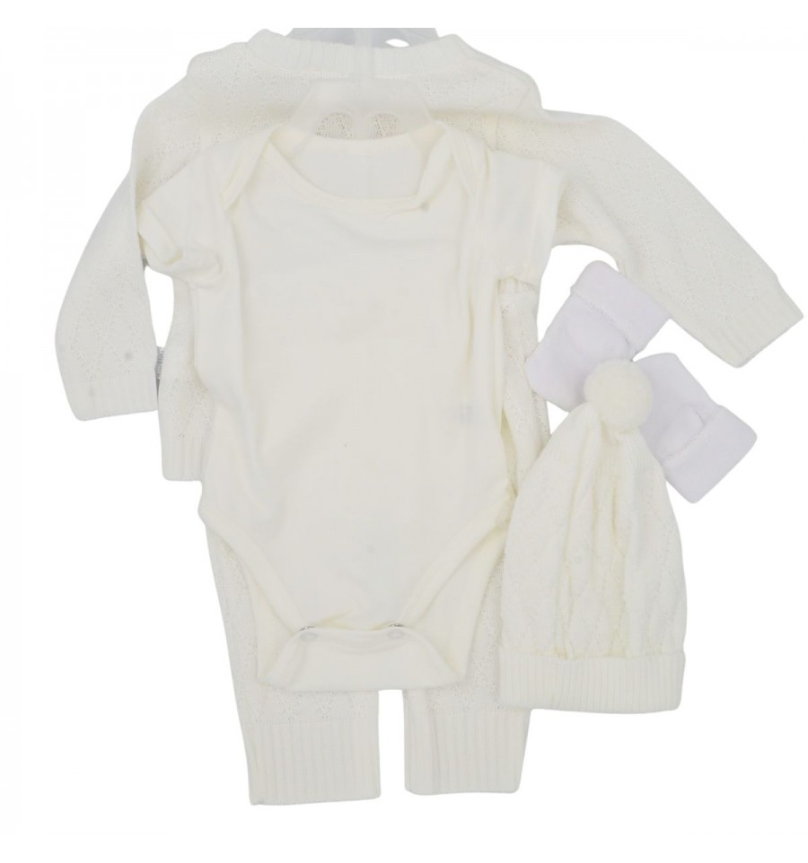 contiene : buzo, pantalón, body, gorro, medias y toallita babitas