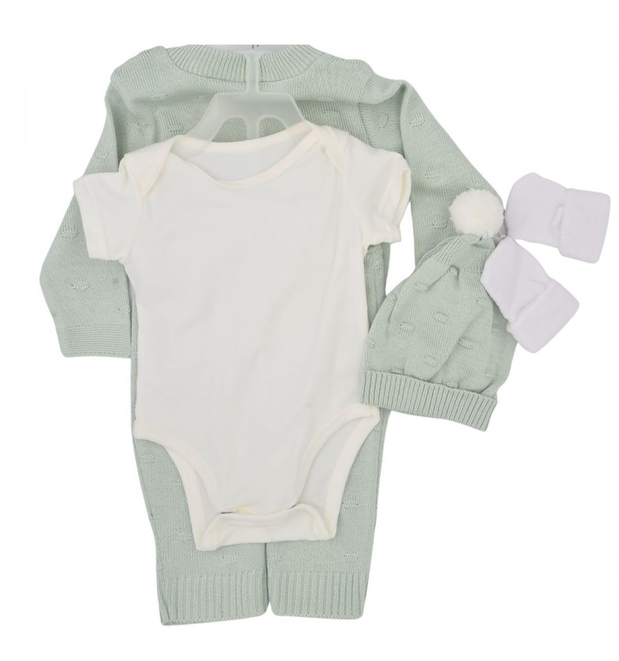 contiene : buzo, pantalón, body, gorro, medias y toallita babitas
