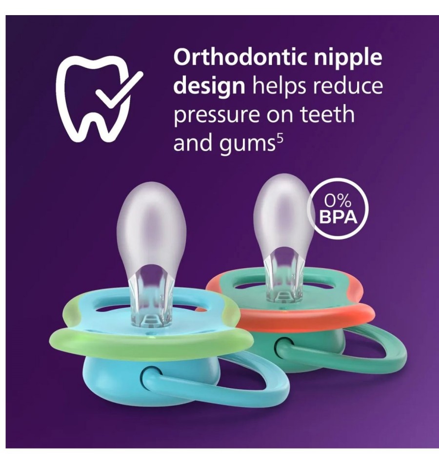 chupos de entretencion marca Philips Avent Ultra Air Pacifier 6-18m, deja que la piel de tu bebe respire, es libre de BPA. Contiene 2 unidades.